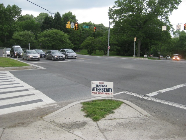 But that is not all. Atterbeary’s campaign has also placed countless illegal campaign signs around the district. State Highway Administration regulations state that political signs “may not be placed in the median or within SHA right-of-way, just as other signs are prohibited.” County regulations also prohibit signs in medians on county roads and mandate their placement at least 100 feet from intersections if they are in the public right-of-way.