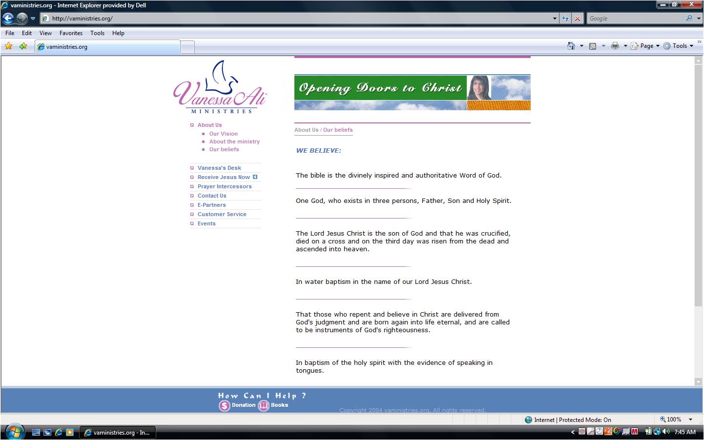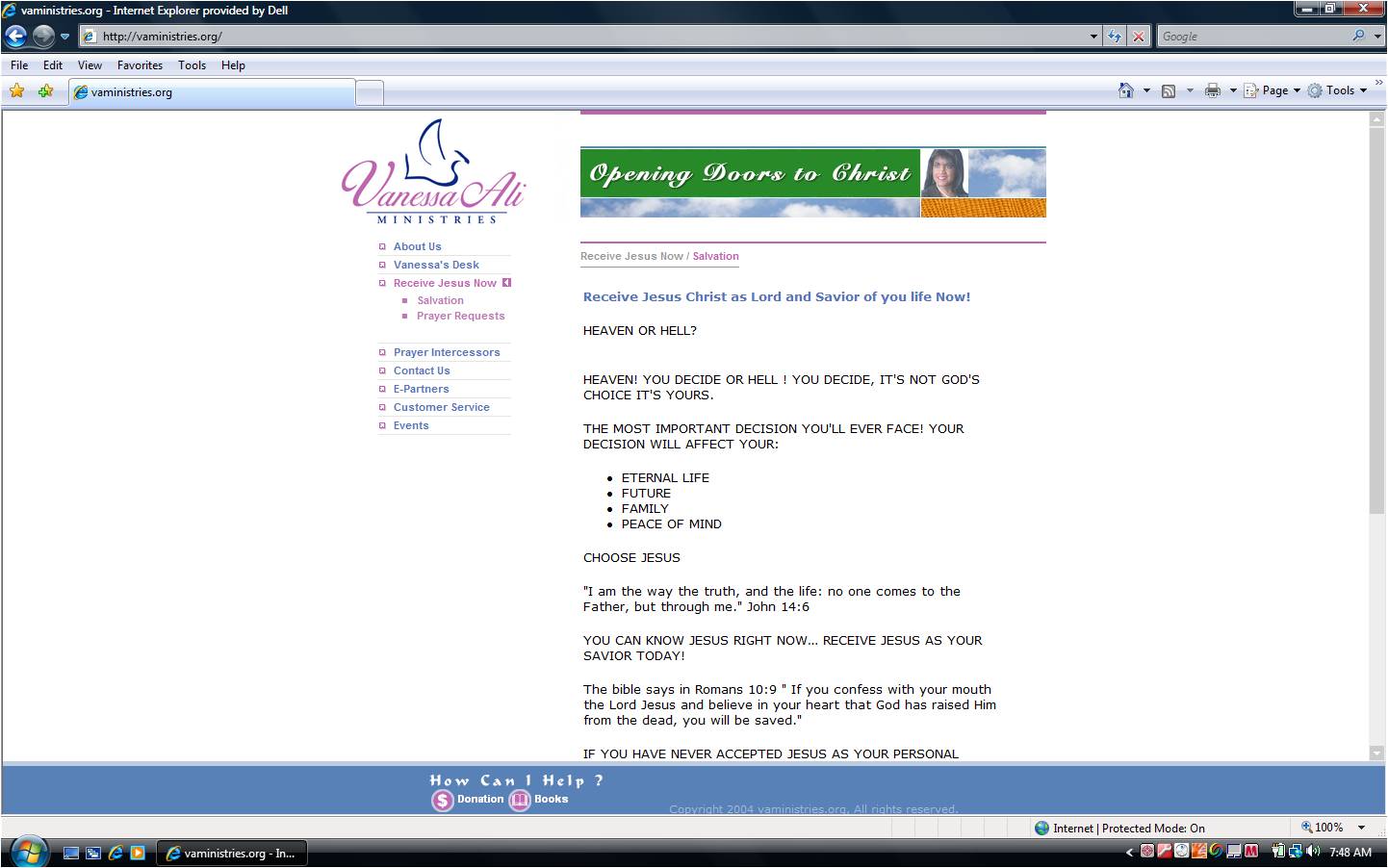 But Vanessa Ali does have another website: this one.  “It is not by chance that you are here at this time,” she says.  “God bought you here so that He could speak to your heart, and we could share our ministry with you.”  That’s right, folks – it’s “bought,” not “brought!”
