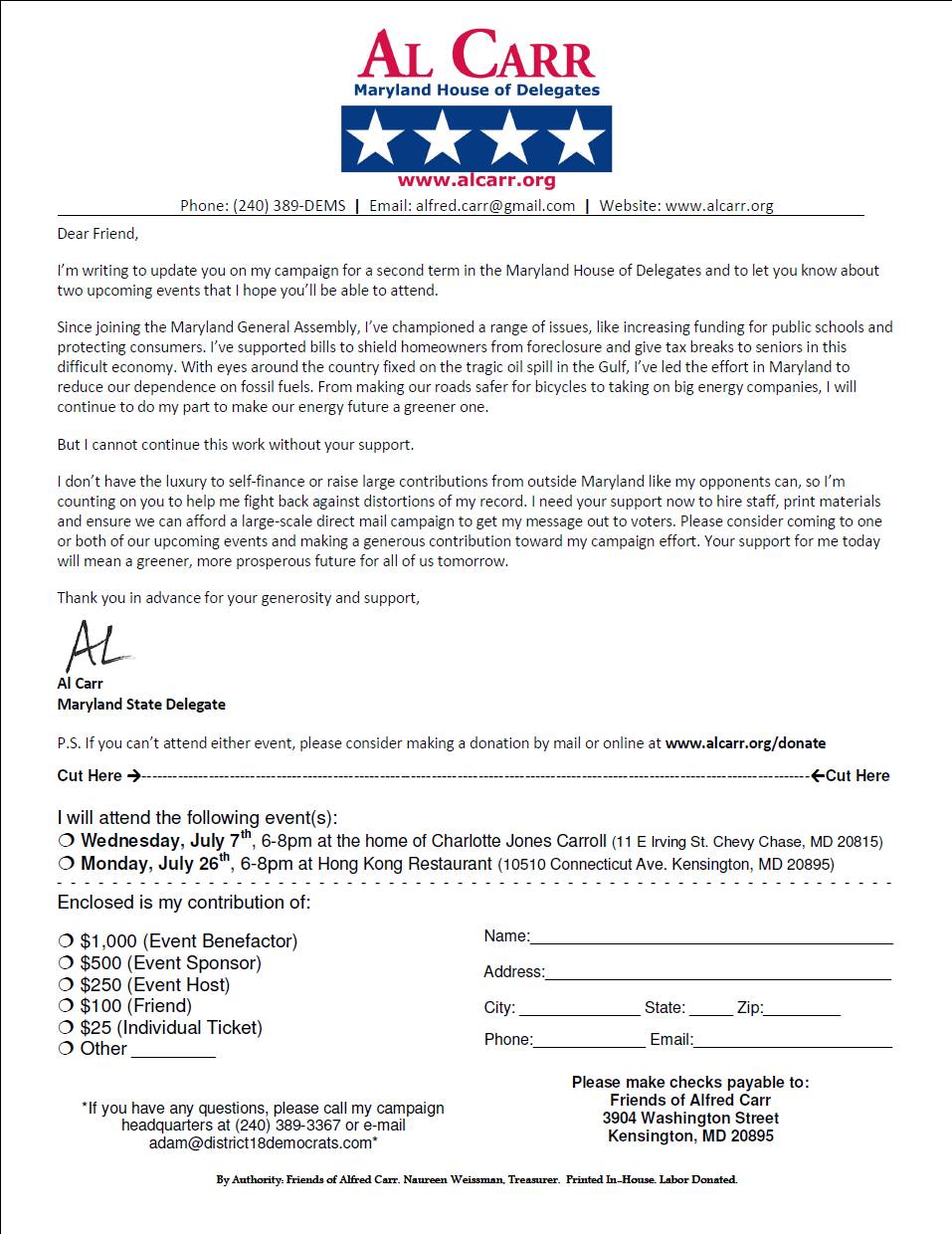 Disclosure: I am the Treasurer of Al Carr’s team.