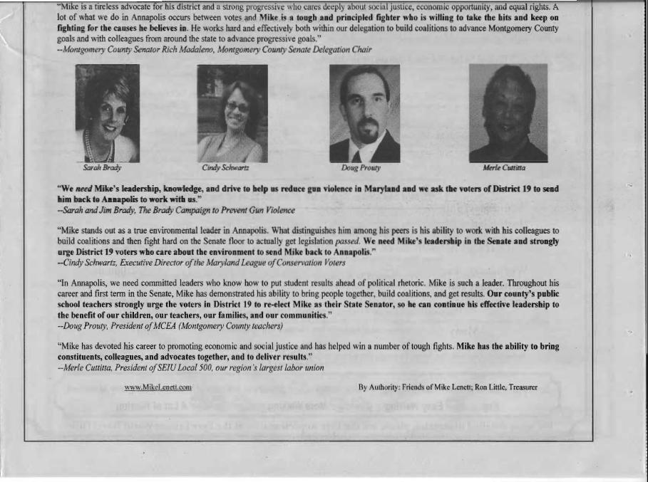 And here is Roger Manno’s full-page ad, in which he repeats his support from Delegate Hank Heller, former Senator Len Teitelbaum and former Delegates Adrienne Mandel and Carol Petzold.