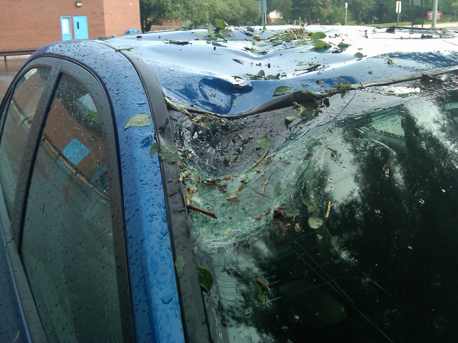 This is Delegate Anne Kaiser’s car. Or, more accurately, this was Delegate Anne Kaiser’s car. Kaiser was out door knocking on Sunday when the storm hit. She took refuge in her car to wait it out, but unfortunately, a giant tree branch had the same idea. Kaiser’s lap was full of broken glass but at least the branch did not make it all the way in.