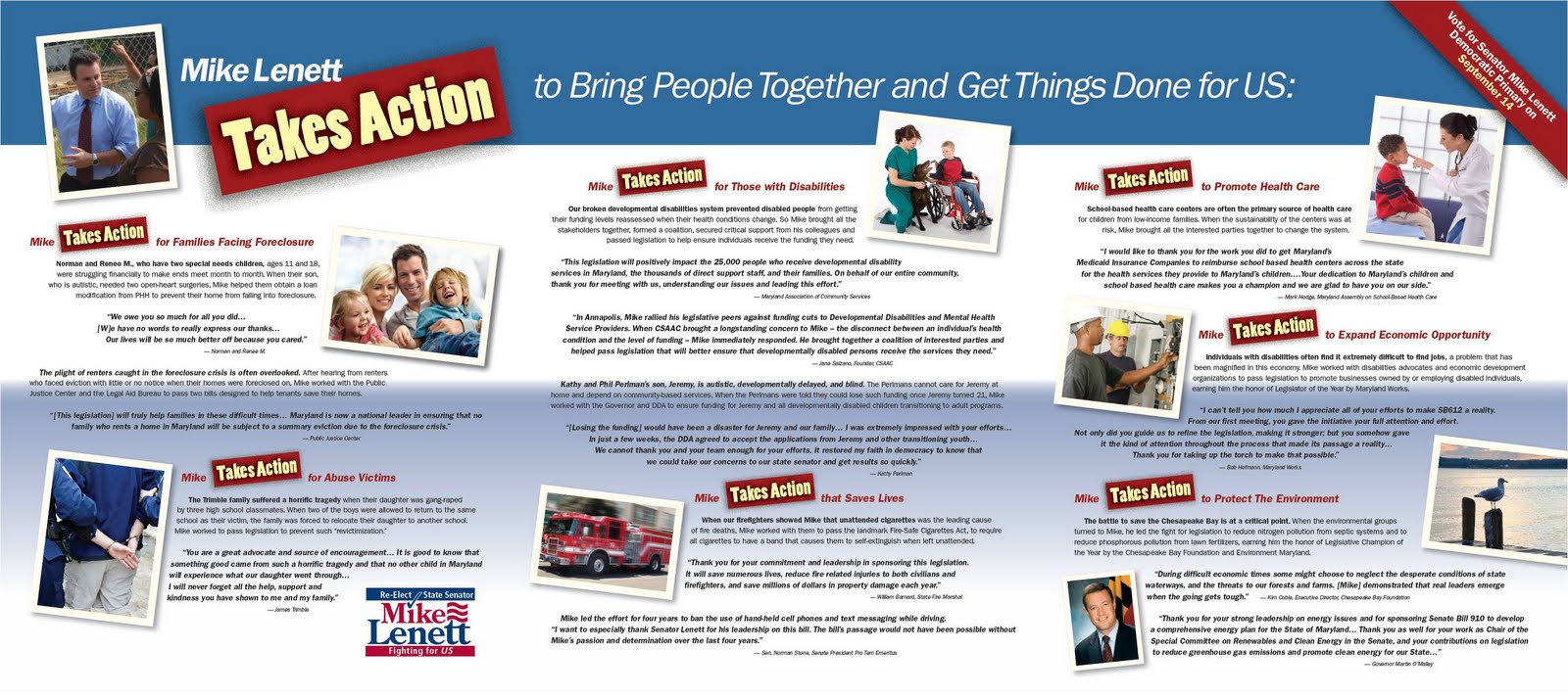 Here is the latest in District 19 Senator Mike Lenett’s series of early and physically imposing mailers. (This one is 27×12 open and 9×12 folded!) There is a wide variety of content here provided that people will take the time to read it. But we really want to know when Lenett will bring back that baseball bat!