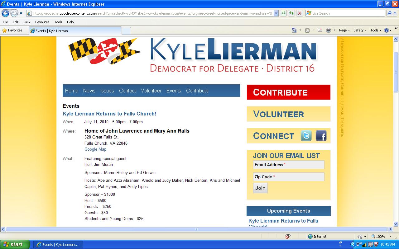 Congressman Chris Van Hollen is unquestionably the most popular politician in Montgomery County. Long-time political observers know it did not necessarily have to turn out that way, as the Republican Congresswoman Van Hollen defeated – Connie Morella – was almost taken out two years before Van Hollen’s victory by lobbyist Terry Lierman. But Lierman was crippled by a scandal that is, incredibly, being resurrected today. And the person responsible for reviving it is none other than his son, District 16 Delegate candidate Kyle Lierman.