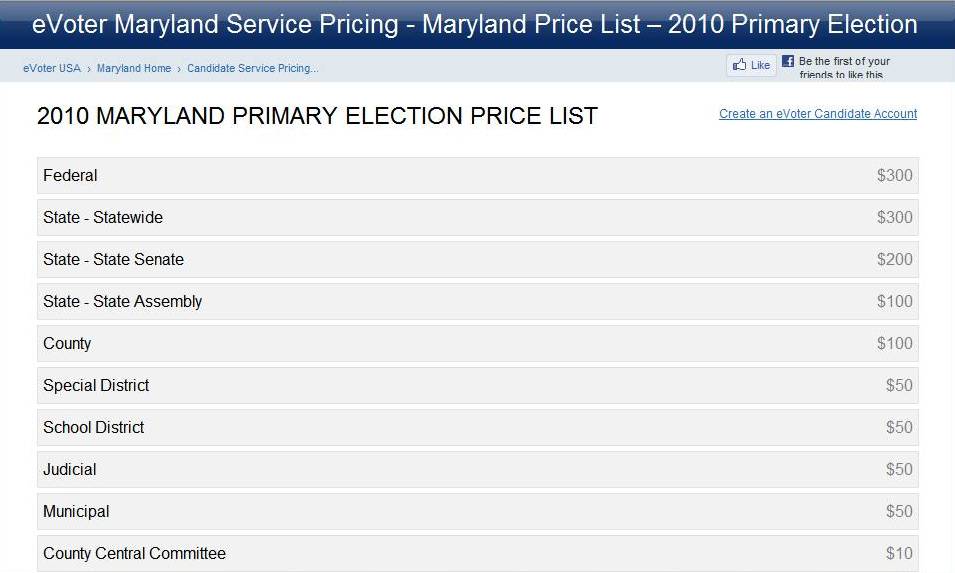 When candidates log in to evoter’s website, they see this fee schedule to access its services.