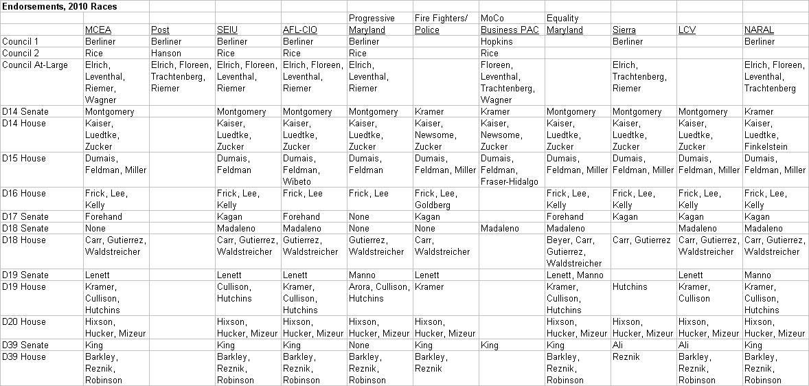 Here is our first update to the endorsements made by major organizations in MoCo’s council and state legislative races.