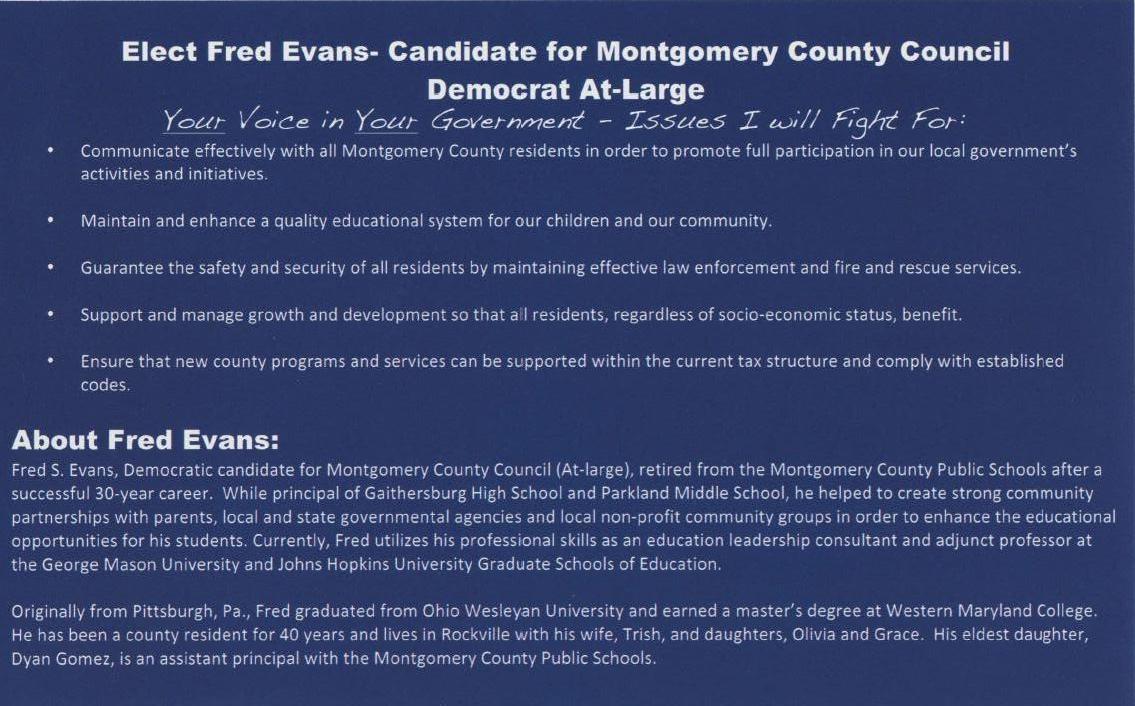 F Fred Evans Walk Piece August 18, 2010 1 Min Read Categorized in: Maryland Politics Watch ArchivePolitics Tagged in: Council At-Large, Fred Evans Share Article: