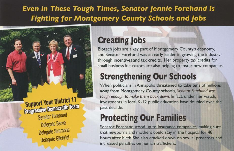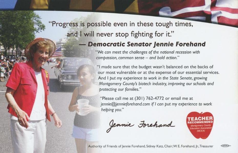 J Jennie Forehand’s Walk Piece August 20, 2010 1 Min Read Categorized in: Maryland Politics Watch ArchivePolitics Tagged in: District 17, Jennie Forehand Share Article:
