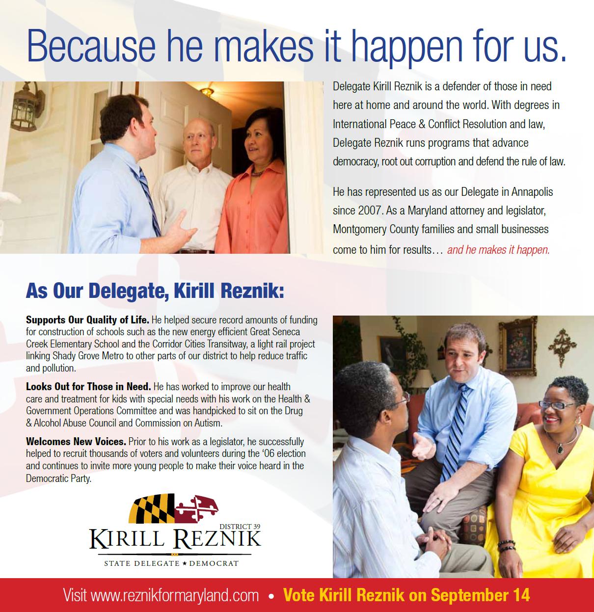 K Kirill Reznik’s First Mailer August 20, 2010 1 Min Read Categorized in: Maryland Politics Watch ArchivePolitics Tagged in: District 39, Kirill Reznik Share Article: