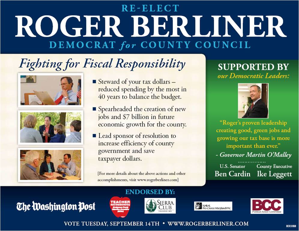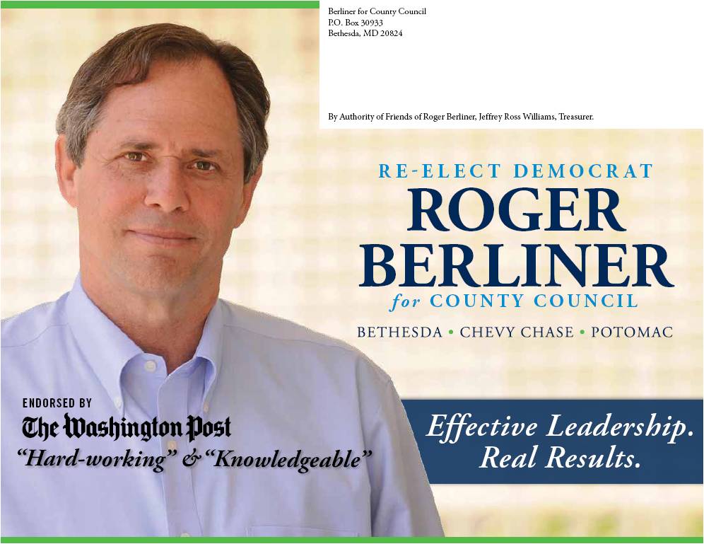 R Roger Berliner’s First Mailer August 31, 2010 1 Min Read Categorized in: Maryland Politics Watch ArchivePolitics Tagged in: Council District 1, Roger Berliner Share Article: