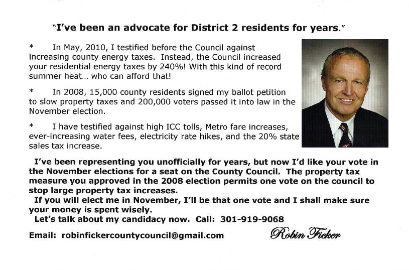 R Robin Ficker’s First Mailer September 2, 2010 1 Min Read Ficker actually picked a worse green than is used by Martin O’Malley. Gotta love it. Categorized in: Maryland Politics Watch ArchivePolitics Tagged in: Council District 2, Robin Ficker Share Article: