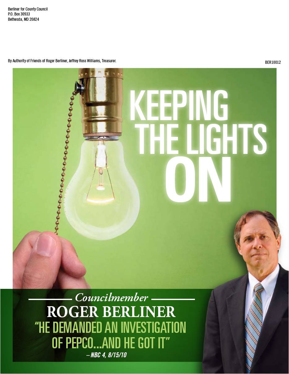 R Roger Berliner’s Pepco Mailer September 2, 2010 1 Min Read Categorized in: Maryland Politics Watch ArchivePolitics Tagged in: Council District 1, Pepco, Roger Berliner Share Article: