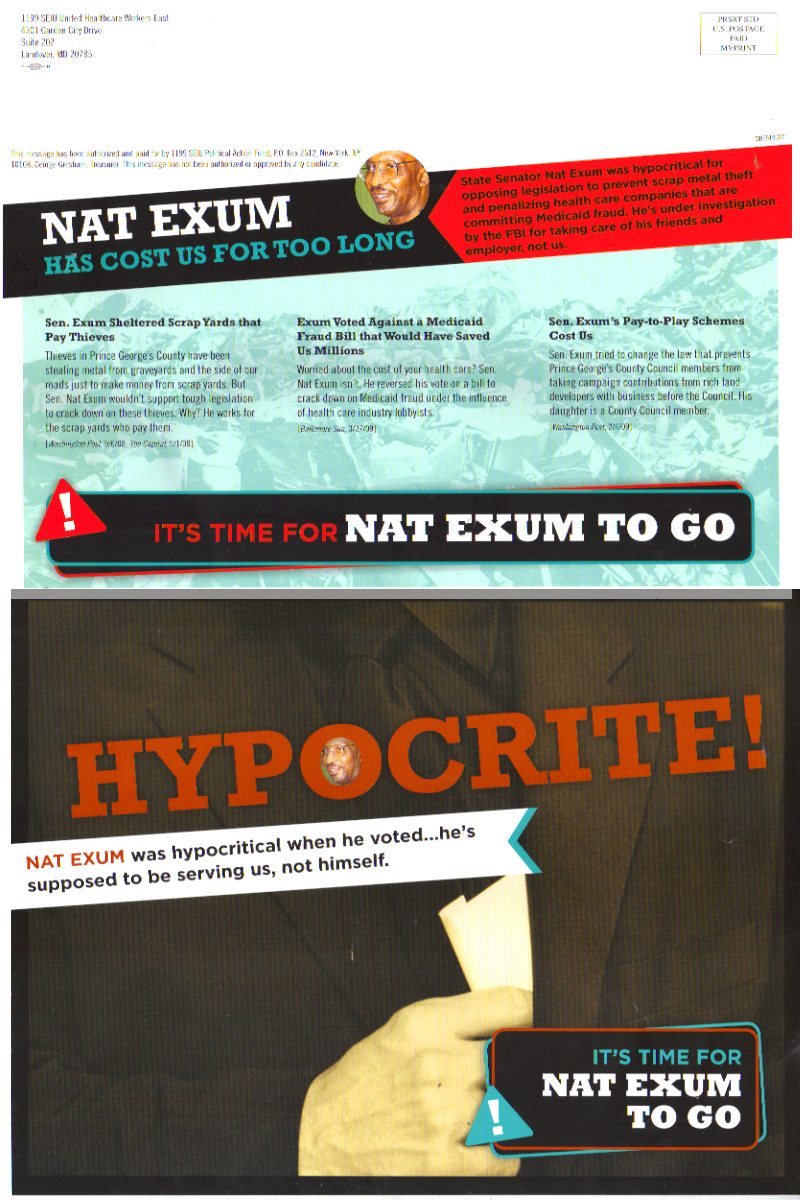 T Third Time! SEIU vs. Exum September 5, 2010 1 Min Read Categorized in: Maryland Politics Watch ArchivePolitics Tagged in: Nathaniel Exum, Negative Campaigning, Prince George's, SEIU Share Article: