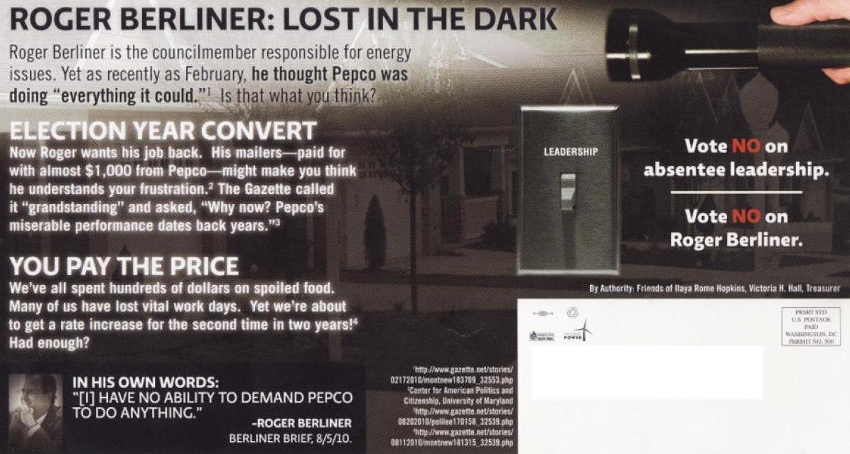 H Hopkins Zaps Berliner on Electricity September 10, 2010 1 Min Read Man, we don’t want to touch this one with a ten-foot pole, or else… BRRZZZZT!!! Categorized in: Maryland Politics Watch ArchivePolitics Tagged in: Council District 1, Ilaya Hopkins, Negative Campaigning, Pepco, Roger Berliner Share Article: