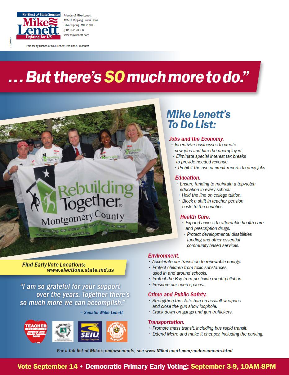 M Mike Lenett: “There’s So Much More to Do” September 10, 2010 1 Min Read Categorized in: Maryland Politics Watch ArchivePolitics Tagged in: District 19, Mike Lenett Share Article: