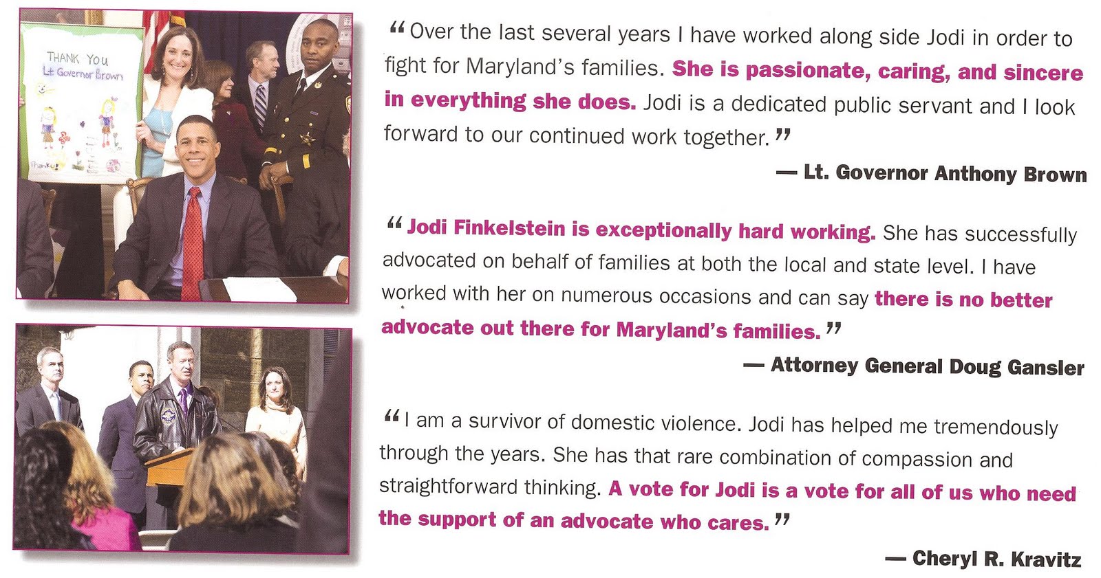 J Jodi Finkelstein’s Mailer September 12, 2010 1 Min Read Categorized in: Maryland Politics Watch ArchivePolitics Tagged in: District 14, Jodi Finkelstein Share Article: