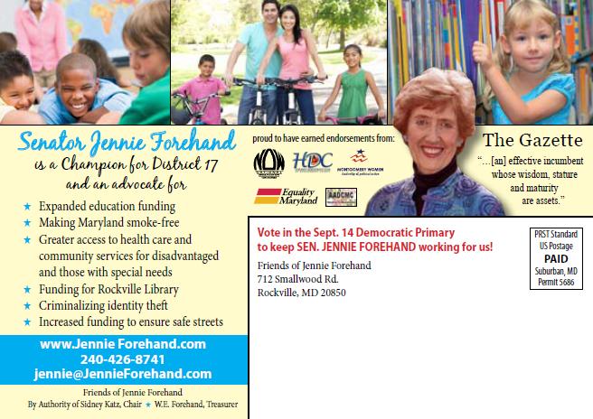 J Jennie for Kids September 13, 2010 1 Min Read Categorized in: Maryland Politics Watch ArchivePolitics Tagged in: District 17, Jennie Forehand Share Article: