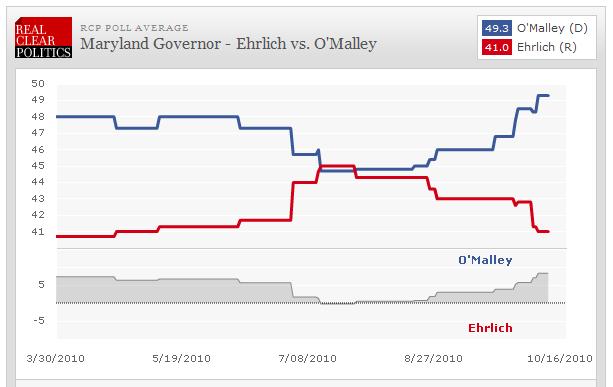 I Is O’Malley Starting to Pull Away from Ehrlich? October 12, 2010 1 Min Read Here’s a chart of poll averages from Real Clear Politics. And here is the list of poll results on which they are relying. Categorized in: Maryland Politics Watch ArchivePolitics Tagged in: Martin O'Malley, polls, Robert Ehrlich Share Article: