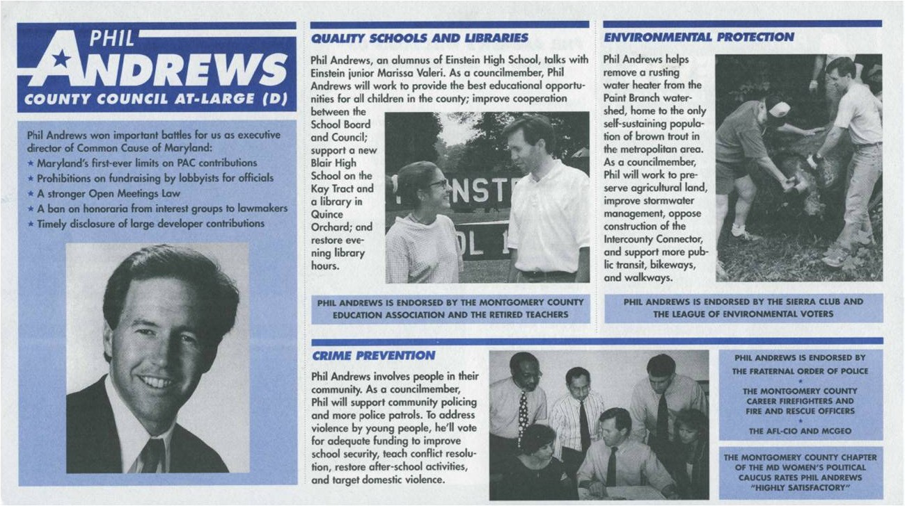 Garrott was the kind of politician who was cited as a validator by other candidates. Here’s one example from 1994, when Phil Andrews asked Garrott to chair his first campaign, an at-large council race, and stressed that fact in a mailer. Andrews finished sixth, but took up Garrott’s legacy four years later when he won the District 3 seat.