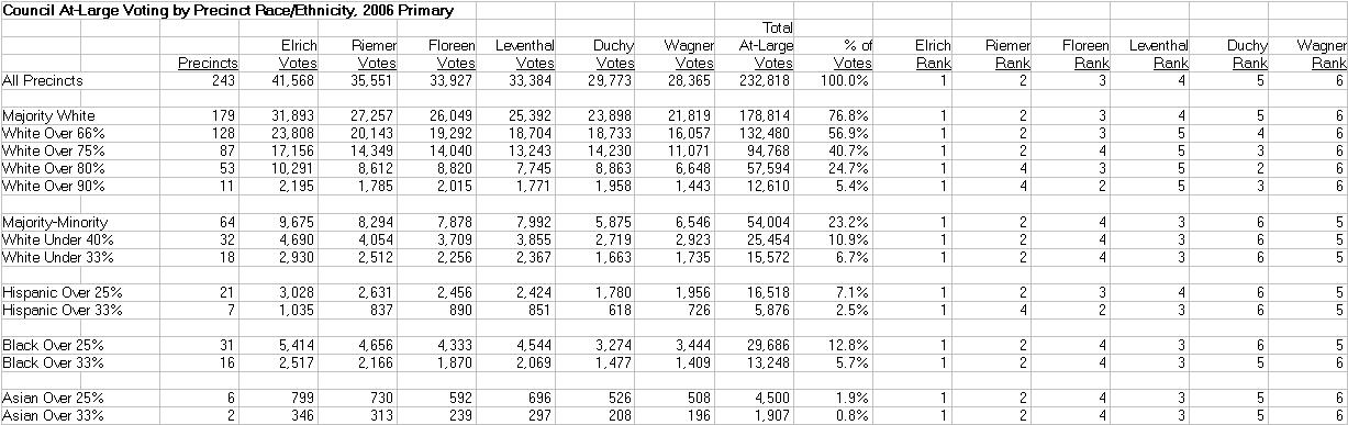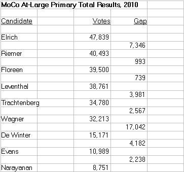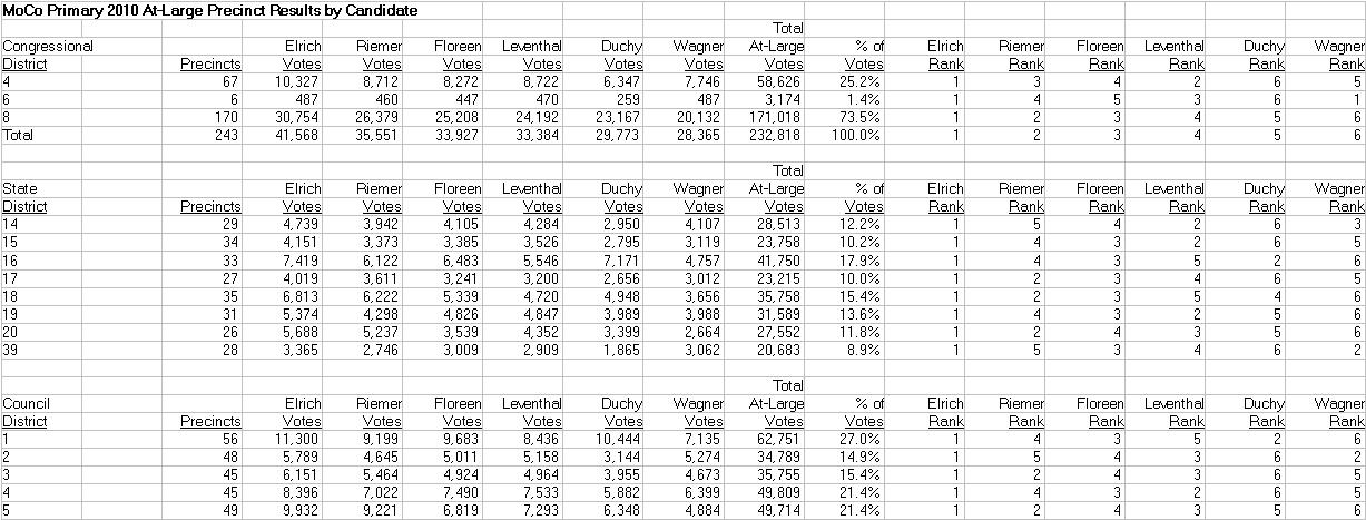 M MoCo Primary 2010: Council At-Large Precinct Results October 18, 2010 1 Min Read Total Results (Including Absentees and Provisionals) By District By Local Area By Race/Ethnicity Categorized in: Maryland Politics Watch ArchivePolitics Tagged in: Becky Wagner, Council At-Large, Duchy Trachtenberg, George Leventhal, Hans Riemer, Marc Elrich, MoCo Primary Results 2010, Nancy Floreen Share Article: