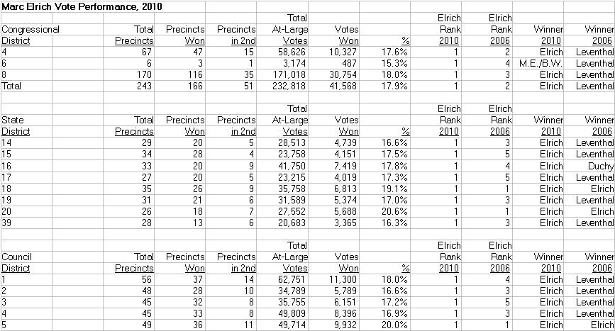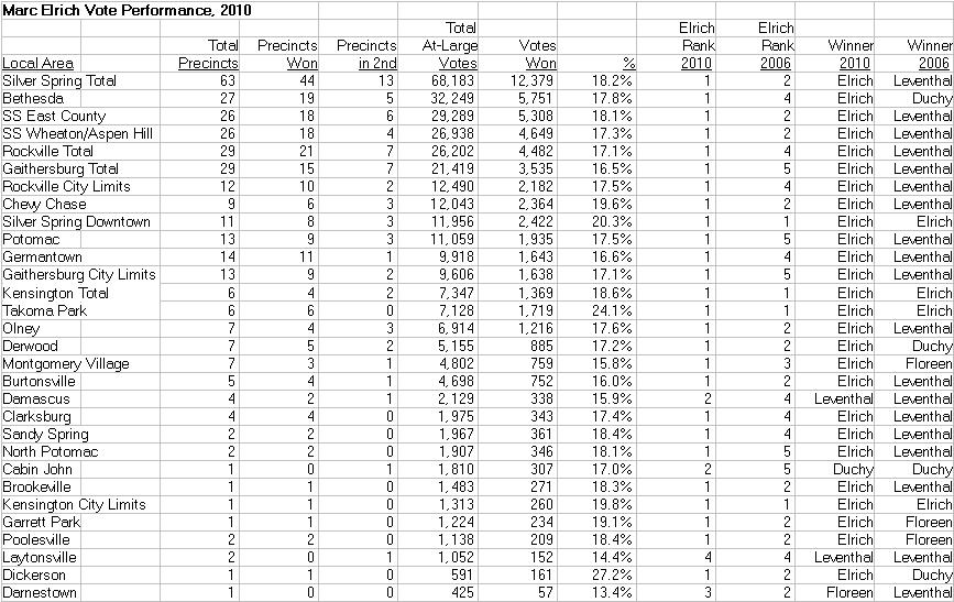 M MoCo Primary 2010: Marc Elrich Precinct Results October 19, 2010 1 Min Read By District By Local Area By Race/Ethnicity Categorized in: Maryland Politics Watch ArchivePolitics Tagged in: Council At-Large, Marc Elrich, MoCo Primary Results 2010 Share Article: